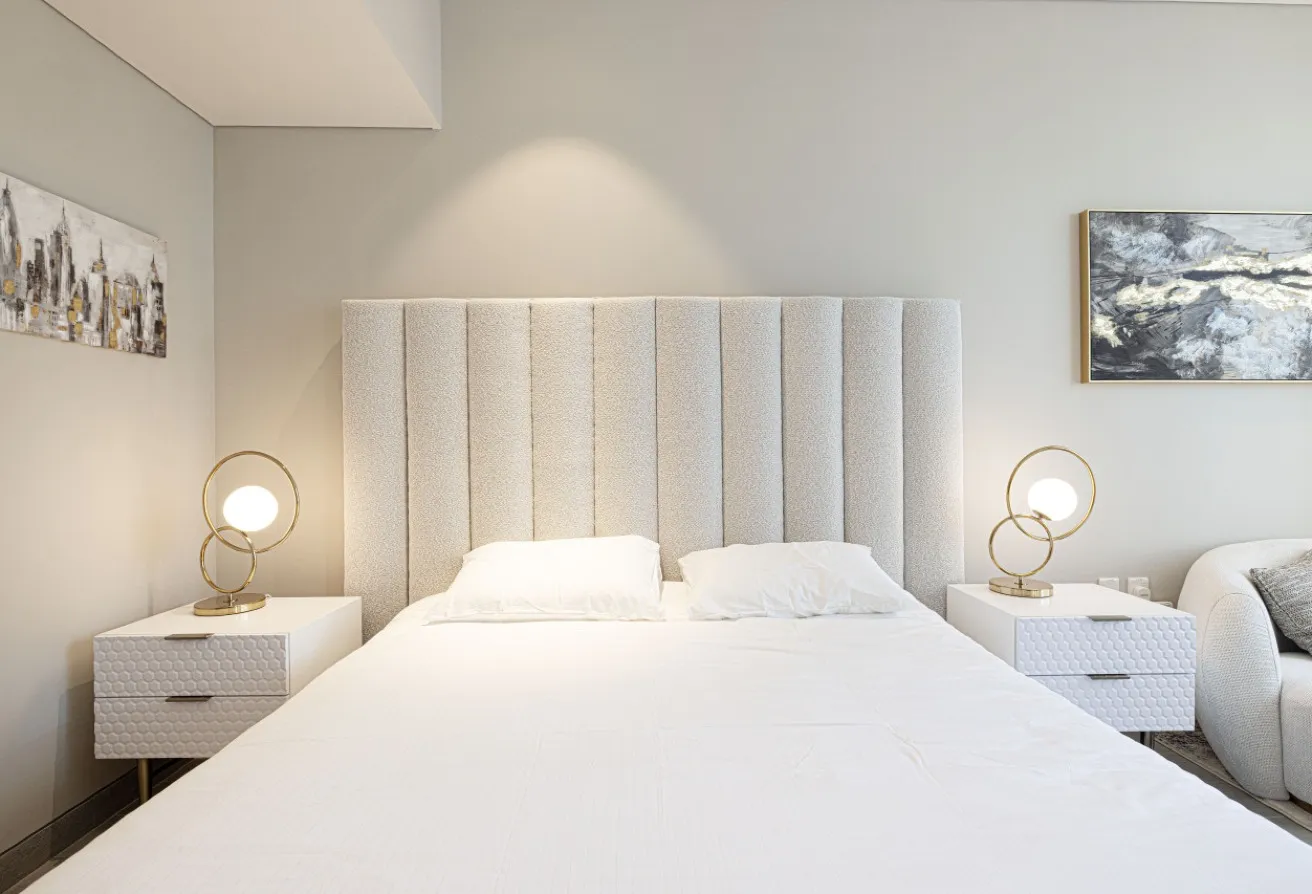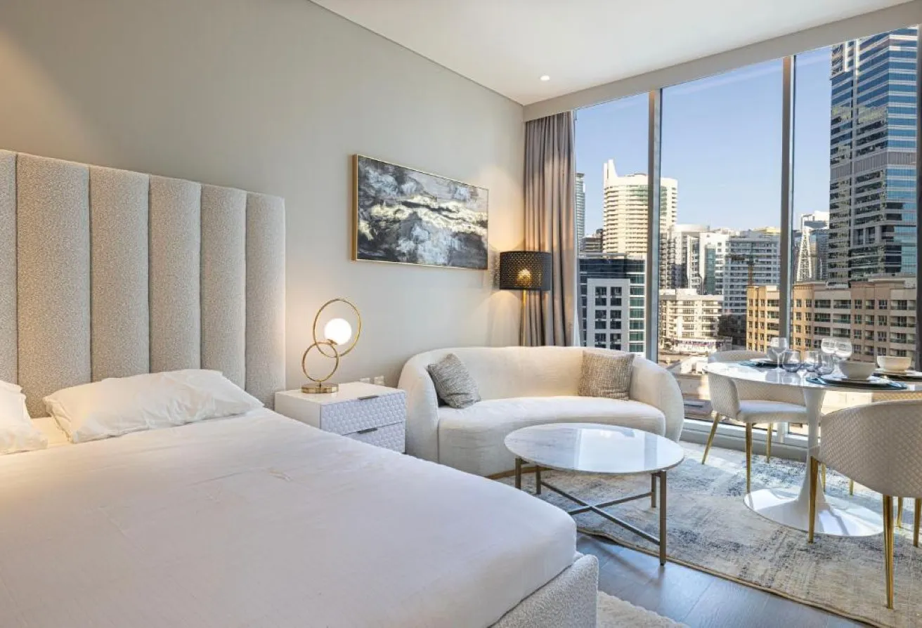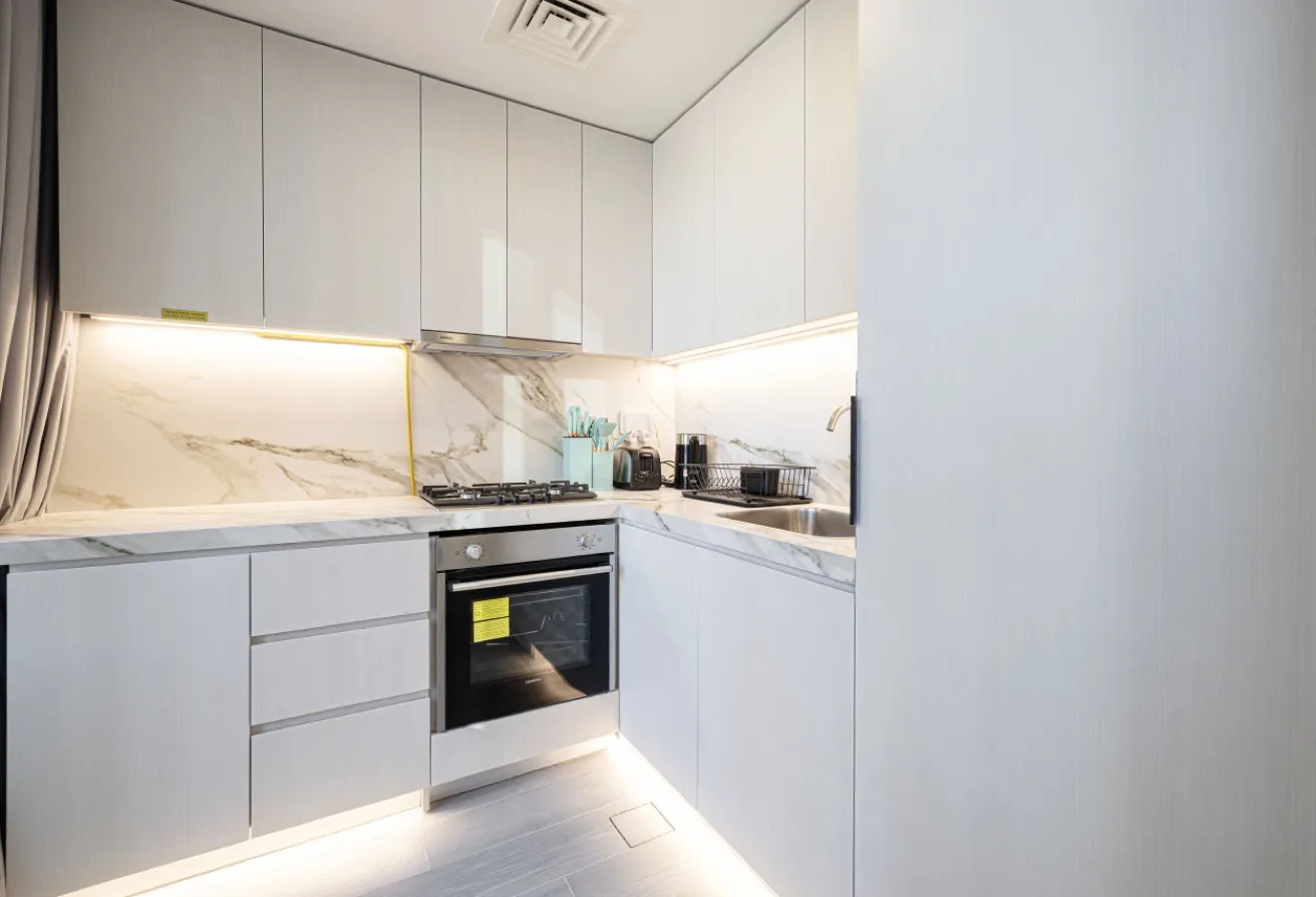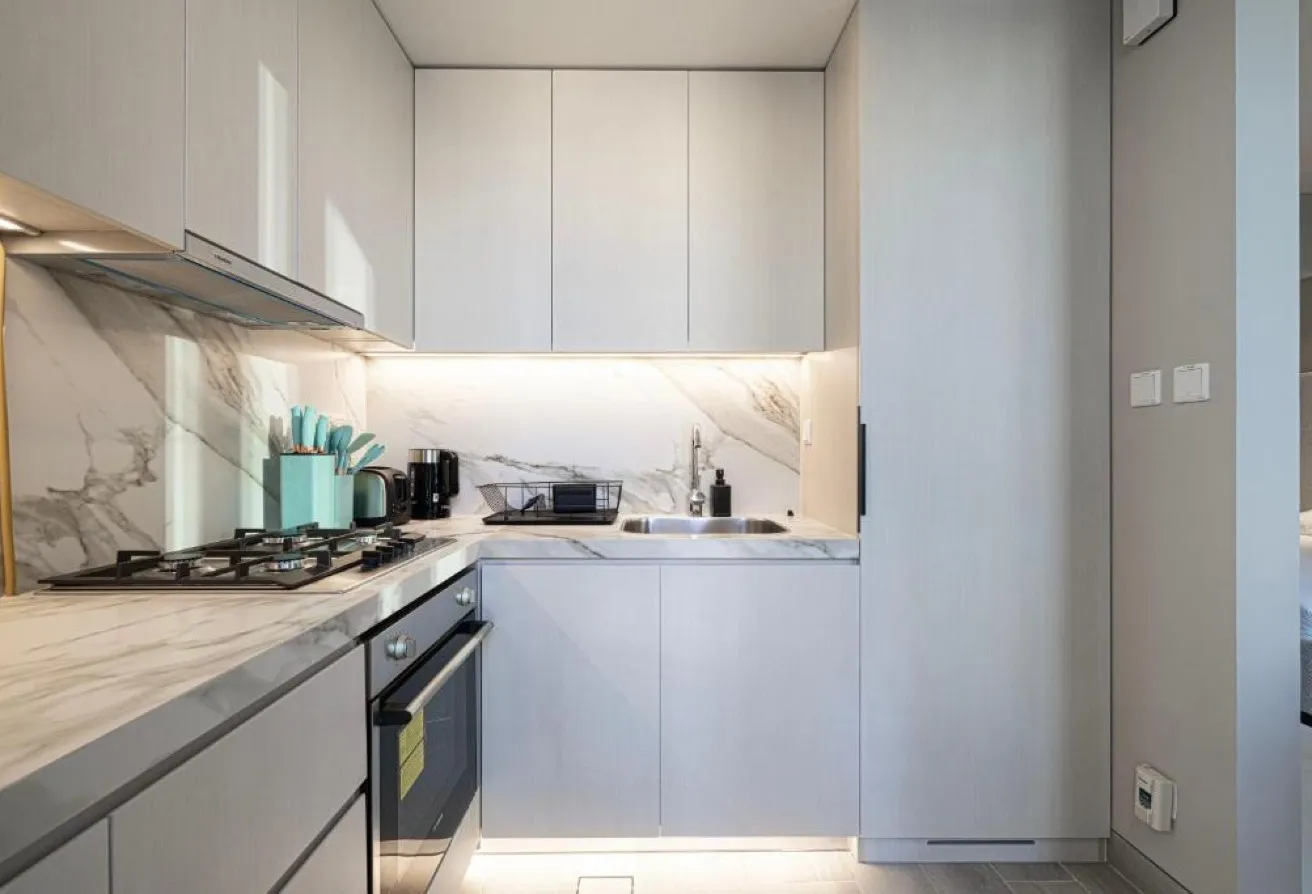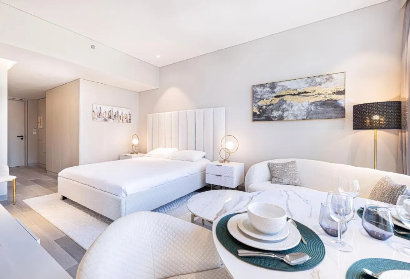 The open kitchen is fully equipped with premium appliances, while the furnished living and sleeping area is thoughtfully arranged for maximum comfort. Enjoy a private balcony overlooking the waterfront—perfect for relaxation.