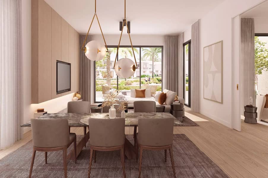 Nestled within picturesque hills and verdant landscapes, Jebel Ali Village is an upscale residential development that promises a lavish lifestyle. This community boasts expansive homes, open-plan designs and sprawling greenery, along with a plethora of amenities. It showcases 3, 4 and 5-bedroom villas, each exuding an air of exclusivity. The modern architecture offers a choice between two impeccable finishing options: dark or light colour schemes. Sliding balcony doors in the living room seamlessly merge the indoor and outdoor spaces, leading to a spacious backyard for ultimate relaxation.