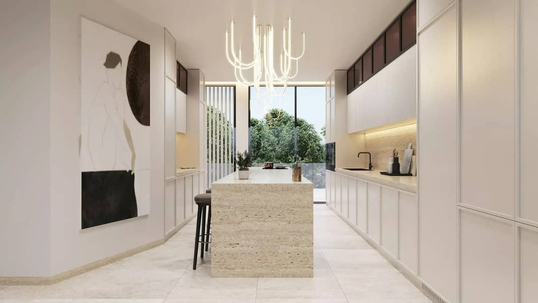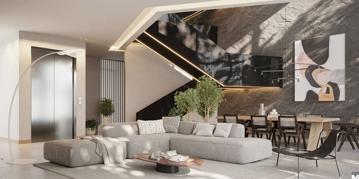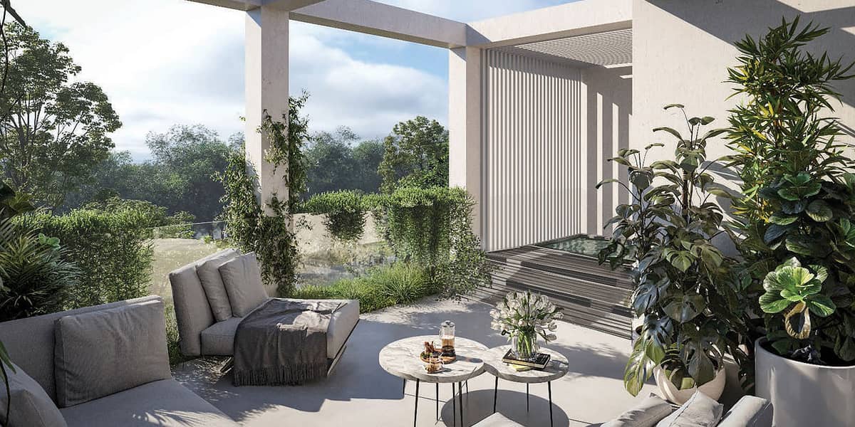 Nestled amidst the lush greenery of Al Barari, IXORA features a collection of luxurious 4-bedroom villas crafted by Al Barari Development Company LLC. This exclusive project consists of 82 three-storey villas, drawing inspiration from Ixora flowers. The neighbourhood has a range of amenities such as a kids’ play area, pool, clubhouse, leisure and sports courts, beach club, restaurants and more. Villas in IXORA have a double-height foyer that opens to a private backyard garden and an architectural staircase. Moreover, the exterior design showcases vertical concrete slabs dividing facades into sections, enhancing the shading system for optimal comfort.