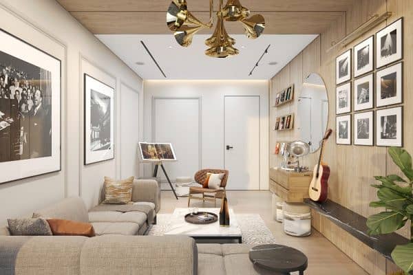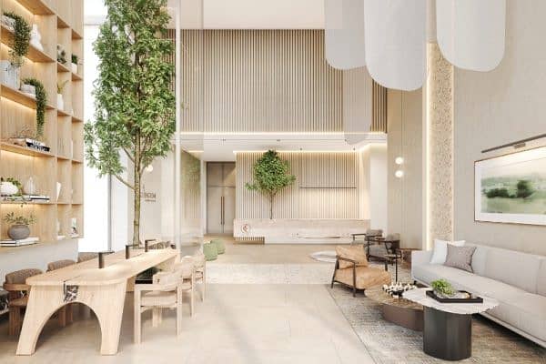 The Highbury signifies a new period of growth for Ellington Properties and opens up new opportunities for prospective buyers. There is a choice of studios and 1, 2, 3, and 4-bedroom apartments in the off-plan project located in Sobha Hartland. The project embodies the concept of a 'vertical village' where residents can feel a sense of belonging and be part of a larger community. Adorned with light wood, an array of plants, and recycled materials, the interior pays homage to the local plants and animals. Peeking through the foliage, a solid floating reception counter greets residents and their guests with the warmth of a welcoming home.