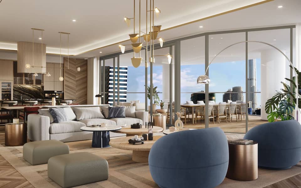 The 35-storey Jumeirah Living Business Bay is a stunning addition to the skyline, designed to stand out and be admired. It boasts 82 spacious residences, each exquisitely designed and featuring elevated details. Along with carefully curated branded amenities and services, Jumeirah Living Business Bay offers a variety of living options, including 2, 3 and 4-bedroom residences, 5-bedroom simplex and duplex penthouses, and a luxurious master penthouse on the top floor. Each residence is fitted to the highest standards, showcasing the elevated quality of branded residences. It is a project by Select Group.