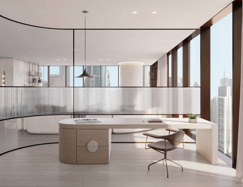 The residential units are available in two distinct categories: Sky Units and Sky Homes. Sky Units are single-level homes with 2 to 4-bedroom layouts, while Sky homes are triplex, duplexes, and full-floor penthouses. AIRE Dubai provides panoramic views of Dubai's skyline and the iconic Burj Khalifa. The design maximises natural light, resulting in bright and flowing spaces.