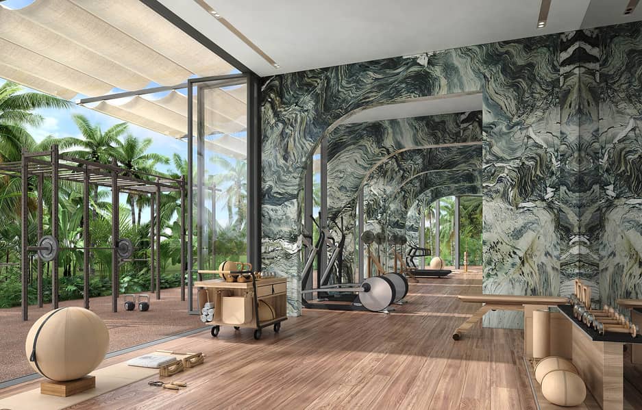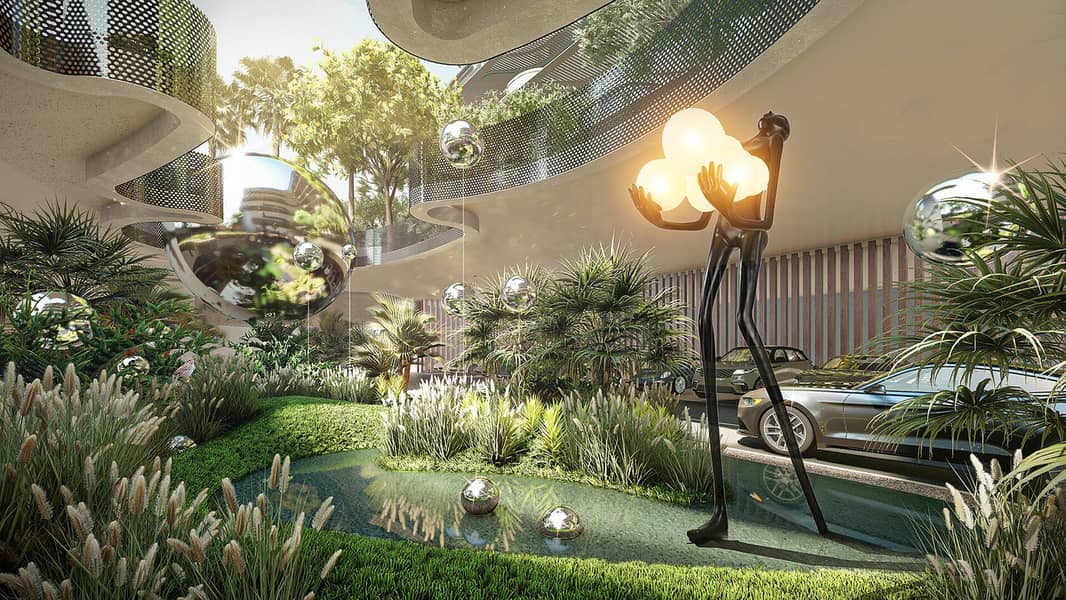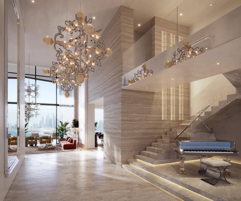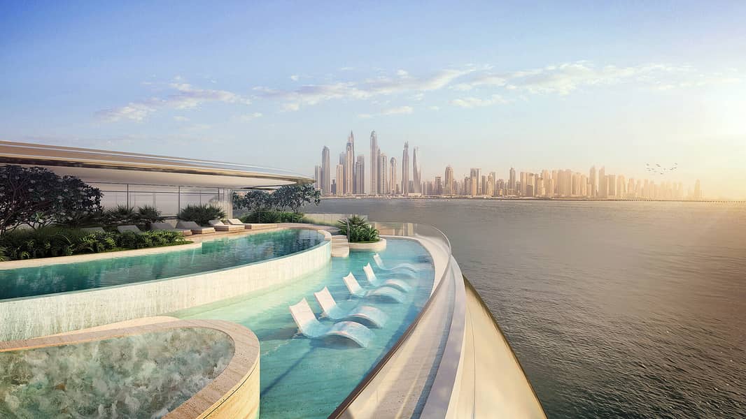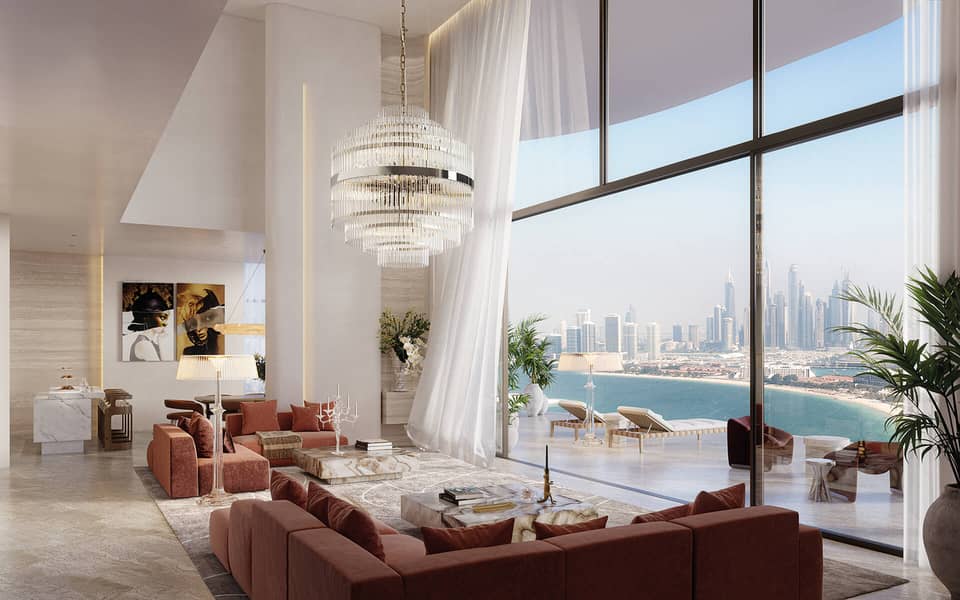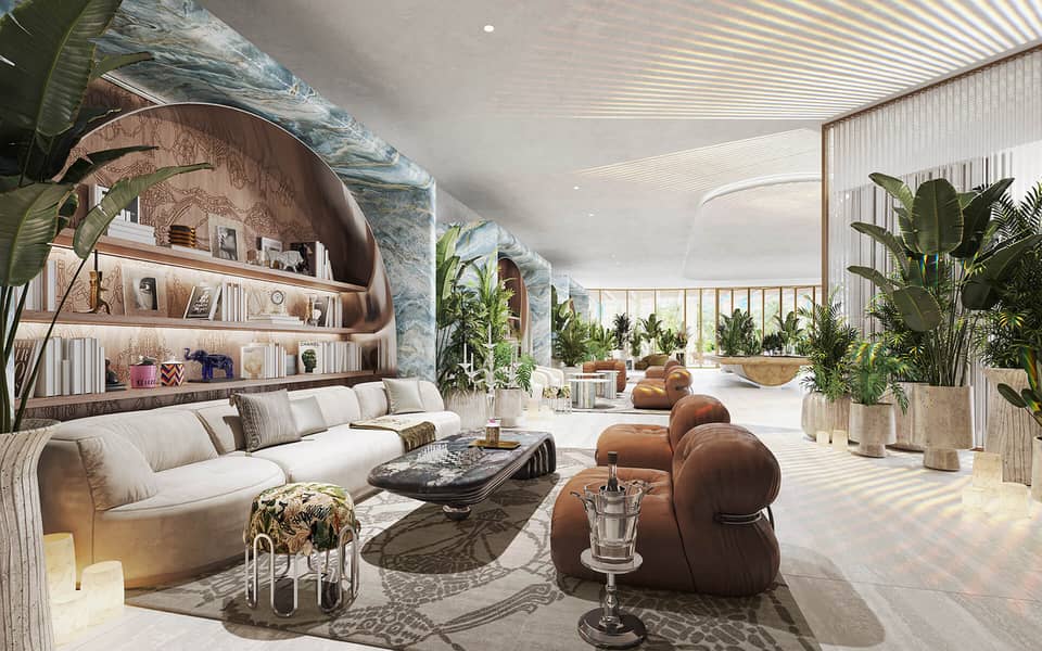 SLS Residences at The Palm Dubai offers a luxurious living experience with a limited selection of properties. These include 2 and 3-bedroom simplexes, 3 and 4-bedroom duplexes and penthouses. The development is surrounded by the turquoise waters of the Arabian Sea and the golden sand dunes, creating a stunning mosaic. Its exterior is designed to resemble waves, giving it a sense of movement. Each unit will have spacious terraces, while the duplexes will have the added convenience of a private swimming pool. The ground floor of SLS Residences at The Palm Dubai will feature 13 flagship residences with their own private gardens.