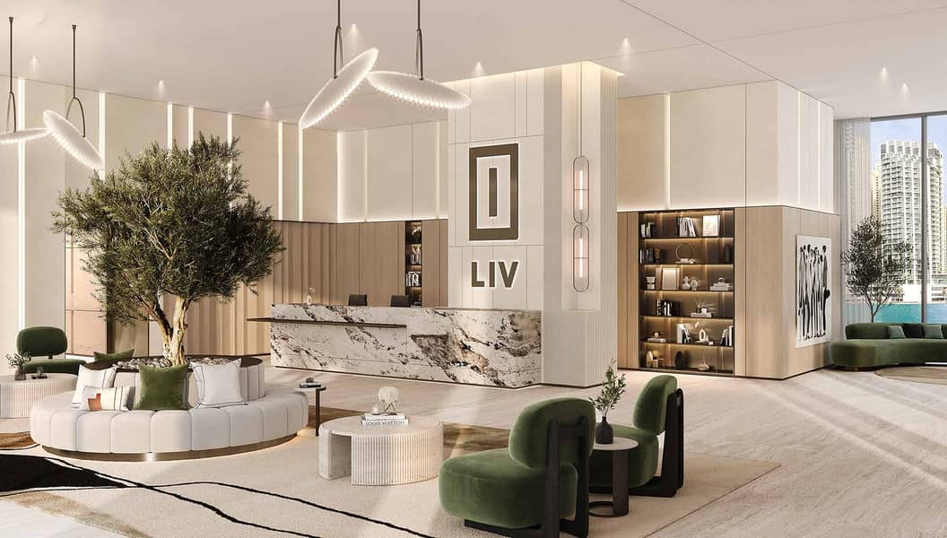 LIV Waterside is an unparalleled residential oasis in Dubai Marina offering a contemporary collection of apartments, villas, townhouses and duplexes. The off-plan project by LIV Developers is designed to perfection with communal areas that are crafted to ooze luxury and the entrance hall with a keen eye for detail. Open-plan living spaces are intelligently designed, featuring panoramic views of the water while kitchens are equipped with marble quartz countertops, built-in seating and appliances. The tower will feature amenities such as a virtual golf facility, conference room, meeting room and breakfast bar.