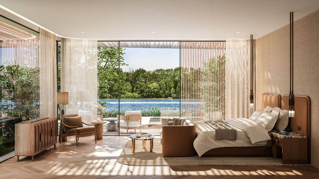Majid Al Futtaim's Plagette 32 is a premium development in Tilal Al Ghaf offering an exclusive selection of 3, 4 and 5-bedroom Water Bungalows and Club Villas nestled amidst verdant surroundings. These residences are designed by internationally acclaimed architects and designers such as Nabil Gholam Architects and Bergman Design House, offer luxury living spaces that exceed 10,000 sq. ft. Features include a sky lounge, private garden, patio, swimming pool and a personal elevator for easy access to all floors. Property owners have the option to customise their homes with landscaping, floor plans, and exterior designs for a unique personal touch.