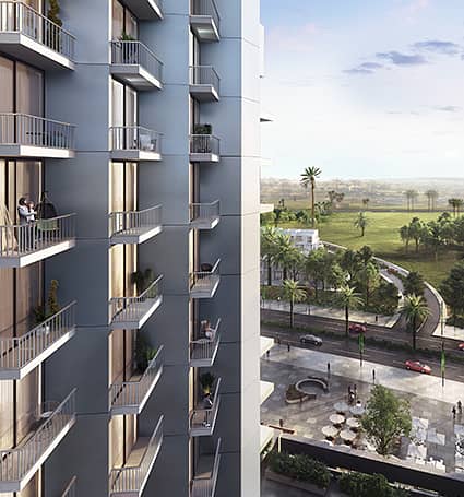 Fiora Golf Verde is a residential complex nestled within DAMAC Hills 2. The project features studios, 1 and 2-bedroom apartments. The residential building is distinguished by its shared podium that houses numerous amenities such as a swimming pool, leisure zone and jogging path. Residents of Fiora Golf Verde can enjoy many community features, including a park for families, an educational institute, fitness centre and wellness spa, not to mention various retail outlets, clubs, and beautifully maintained gardens. Additional services include concierge assistance, indoor vehicle storage, and security service, all contributing towards a safe, cosy living environment.