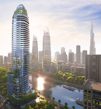 Positioned along the breathtaking Dubai Canal in the lively Business Bay, Altitude de GRISOGONO exists as a symbol of opulence. A project by DAMAC Properties, it offers studios, 1, 2 and 3-bedroom apartments. The in-house facilities will include an outdoor swimming pool with sun beds powered by solar energy, a children's play area, a fitness centre and temperature-controlled flotation pods. A short drive from Altitude will take you to the urban recreational spots of City Walk and the everlasting charm of Jumeirah Beach, providing residents with unmatched access to both contemporary conveniences and natural beauty.