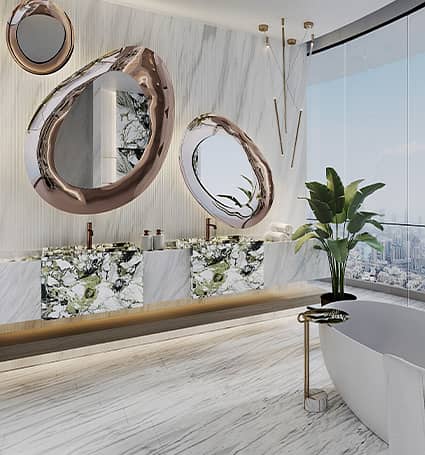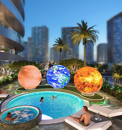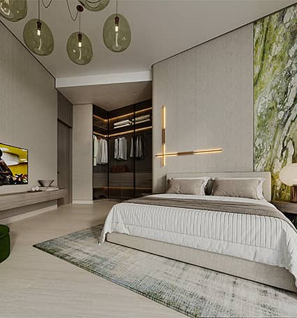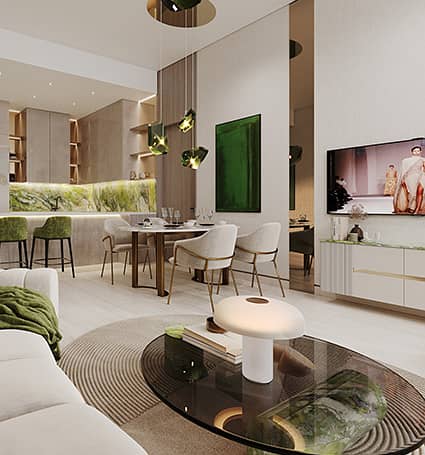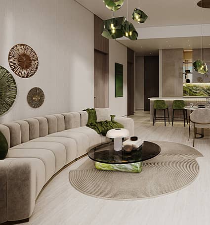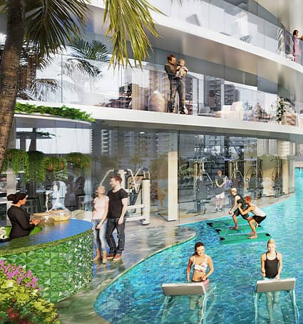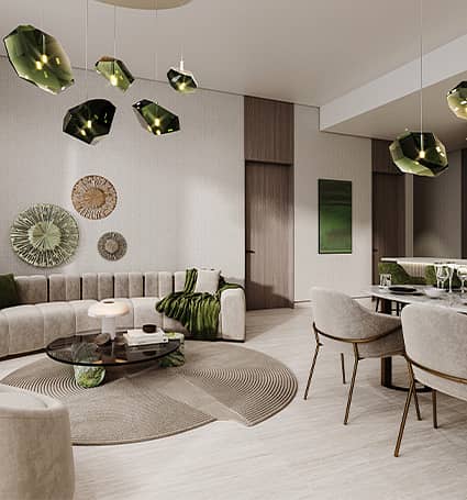 The 'luxury' tier consists of studios and 1 and 2-bedroom flats, while the 'super-luxury' section offers extravagant 3 and 4-bedroom duplexes. Each abode at Canal Crown features a curved balcony, offering sweeping views of either the magical Dubai Water Canal or the Burj Khalifa.