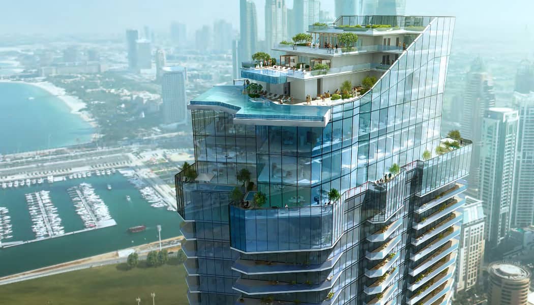 The Habtoor Grand Residences is a prestigious 50-storey residential tower nestled in Dubai Marina, providing a range of opulent accommodations from 2 to 4-bedroom flats to 3 to 4-bedroom townhouses and 4-bedroom penthouses. Each dwelling offers breathtaking vistas of Dubai Marina and the Arabian Gulf ensuring an unparalleled waterfront living experience. There is a plethora of amenities in the development such as a rooftop pool, gym, tennis courts and jogging paths. It also provides easy access to high-end dining and retail experiences, solidifying its reputation as a desirable location in Dubai Marina. This grand construction is backed by Al Habtoor Group.