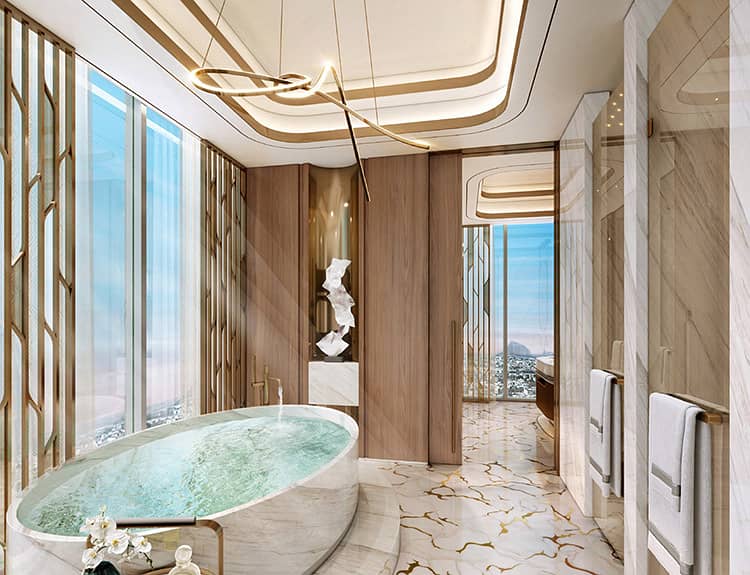 Situated in Sufouh Gardens, Fairmont Residences Dubai Skyline is a remarkable venture brought to life by the RSG Group. It features 2 and 3-bedroom flats and 4-bedroom Sky Mansion and Sky Palace residences. The award-winning interior designer Kristina Zanic has crafted the interiors drawing inspiration from desert landscape and flowing pattern to capture the essence of Dubai. The residential tower promises an exceptional lifestyle with breathtaking views of the sea set against the sparkling city skyline. It boasts separate entrances for the hotel and residences, enhanced by panoramic capsule lifts and amenities like a Fairmont spa, gym, meeting rooms, a rooftop observation deck and more.