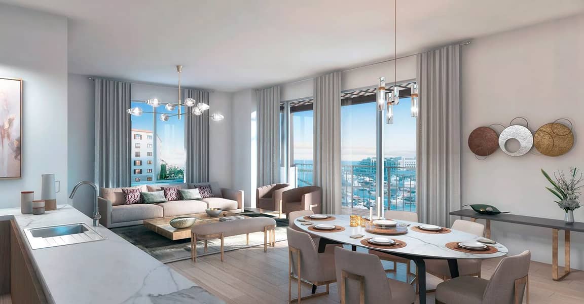 Le Ciel Building 3, the final phase of Meraas' Port De La Mer community in Jumeirah 1, presents an array of elegant 1-4 bedroom apartments and exclusive 5-bedroom penthouses across three mid-rise buildings. Offering living spaces from 786 sq. ft to an expansive 11,323 sq. ft units, each home features balconies or terraces with captivating sea views.