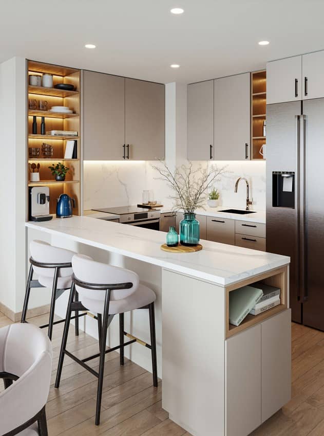 The Mayfair in Town Square represents a selection of studio, 1, 2, 3-bedroom, and duplex apartments, featuring contemporary layouts crafted for privacy and comfort. Upon arrival, residents are greeted by an airy lobby, leading to a landscaped courtyard with a swimming pool, expansive deck and children's play areas for relaxation.