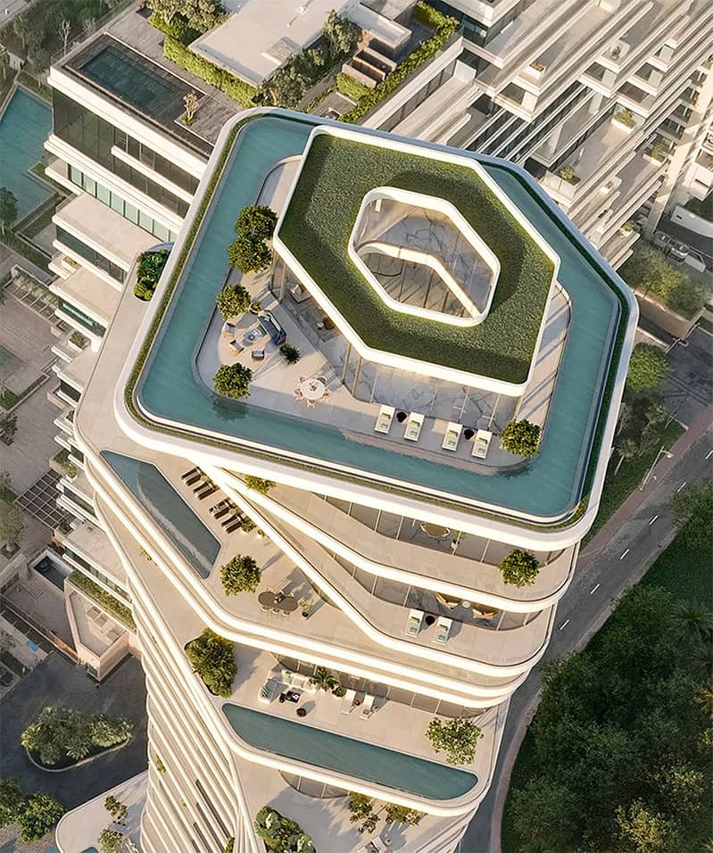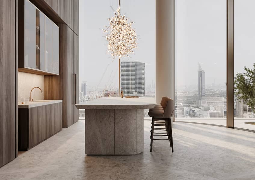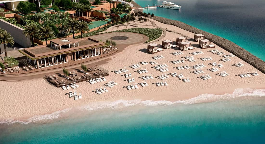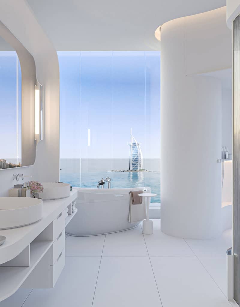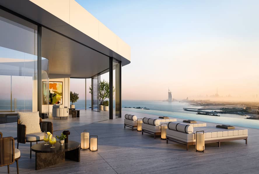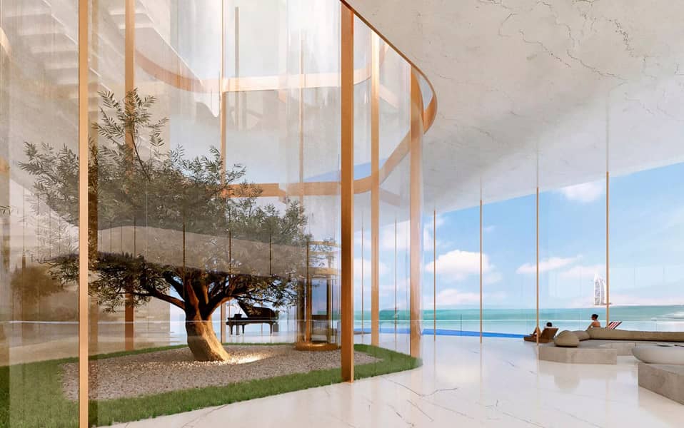 With water as a central theme, the property seamlessly blends with the Arabian Sea, featuring edgeless bodies of water at its entrance. Providing stunning views of the Burj Al Arab and Ain Dubai, the 3 and 4-bedroom apartments come with luxurious amenities such as private swimming pools, elevators, maid’s rooms and family seating areas, accompanied by three parking spaces per unit. The penthouse is a marvel of luxury, featuring a three-story atrium flooded with natural light and adorned with a centuries-old olive tree symbolizing peace and friendship. Residents enjoy an array of exclusive facilities, including an infinity-edge outdoor pool, indoor cinema, library lounge, fitness center, yoga studio and access to the private beach and jetty at the One at Palm Jumeirah, Dorchester Collection, Dubai.
