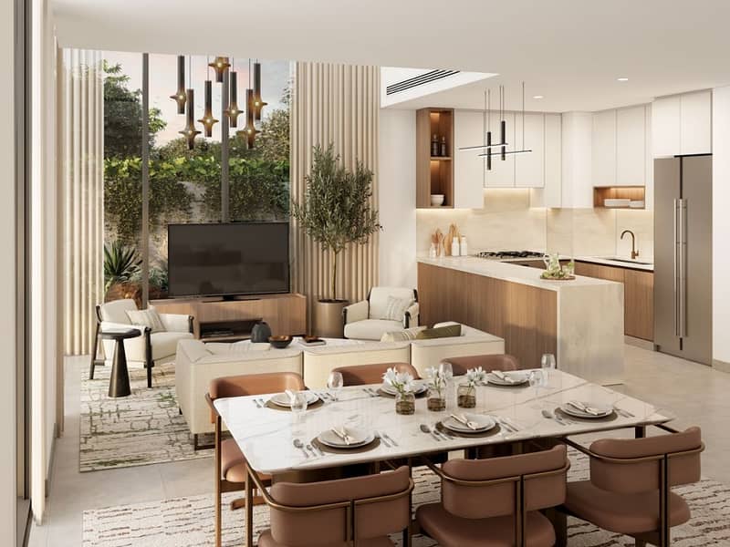 Mudon Al Ranim 5 offers a selection of 3 and 4-bedroom townhouses, designed with contemporary architectural features. Built in a serene and secure environment, these properties are perfect for families seeking a peaceful lifestyle. Close to the central Mudon Al Ranim Park, these residences are near landscaped gardens and winding shaded trails ideal for picnics and leisurely walks.