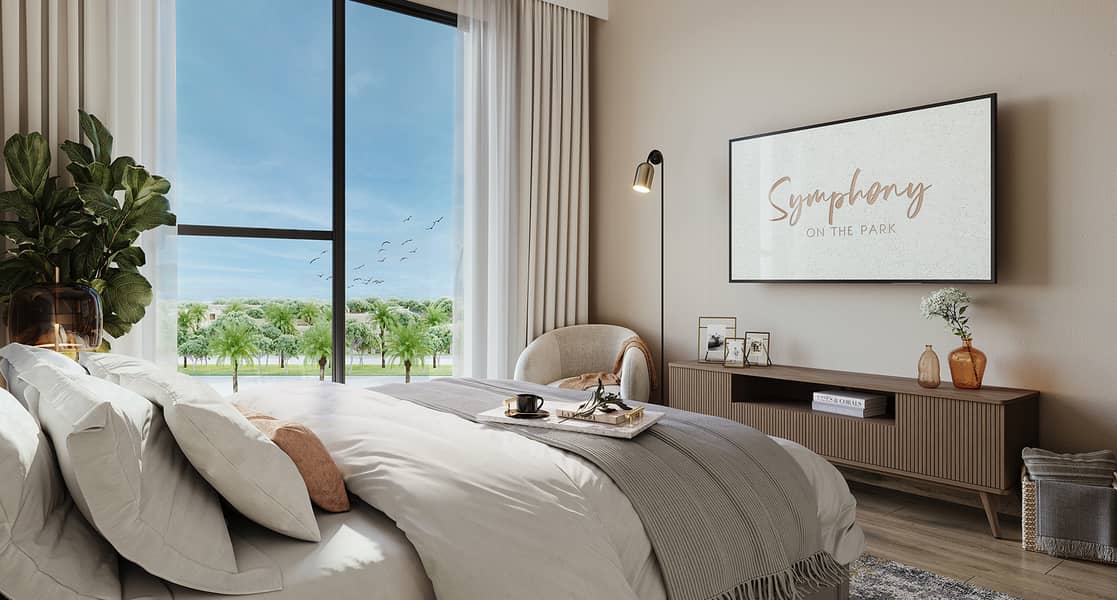 Symphony on the Park, the new apartment project in the popular community of Town Square combines luxury and functionality, boasting meticulously designed interiors featuring glazed porcelain floors, built-in wardrobes, and fully-equipped kitchens.