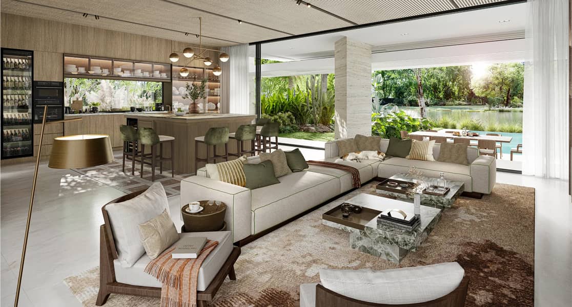 Reveal your distinguished character through the exterior of your grand residence in Waterfront Serenity Mansion in Tilal al Ghaf. Select two distinct bold expressions for each category of the mansion. Where serenity cascades like a gentle stream, and carefully designed gardens envelop your abode, Waterfront Mansions are positioned right next to Lagoon Al Ghaf, providing a calming and rejuvenating way of life. It is an off-plan project by Majid Al Futtaim.