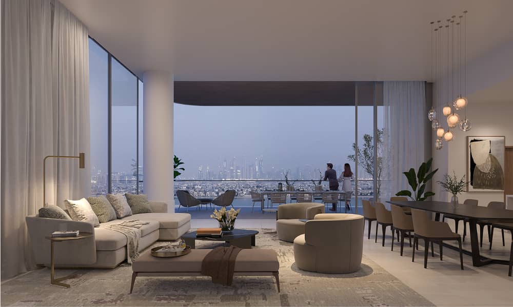 The pinnacle of lavishness can be found in the Sky Mansions of Tower 1, which are adorned with Italian-style furniture and decor from renowned brands like Minotti and FLEXFORM, creating an atmosphere of elegance. The off-plan development is located on The Crescent of Palm Jumeirah near Atlantis The Palm Hotel.