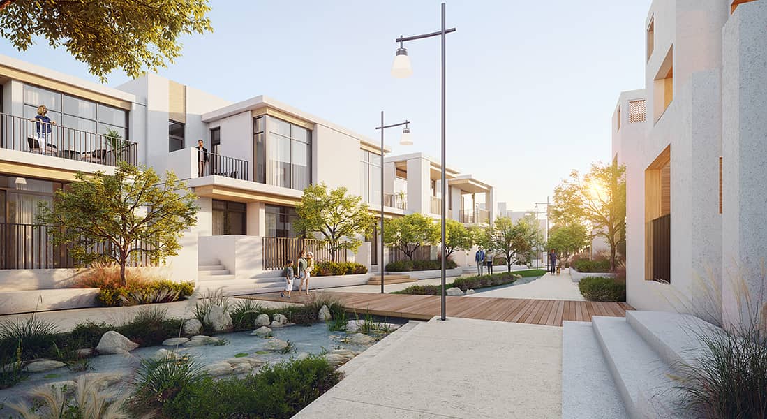 Bliss stands out as Dubai's first urban village with a sustainable design, drawing inspiration from the cozy and tight-knit organic cities and neighbourhoods. The white-washed houses, cobblestone streets, and modern neoclassical architecture all contribute to the unique charm of this community.