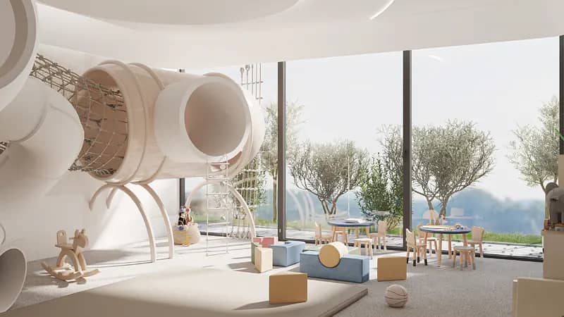 The standout feature is the expansive 20,000 sq. ft. water haven, providing a serene oasis. Additional amenities include a leisure deck, floating river, hydro bikes, padel tennis court, splash pad, rooftop infinity pool, kids' play areas, Zen garden, meditation area and rooftop farming.