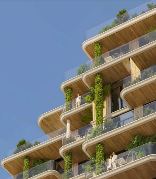 Properties at Oak Yard feature spacious living areas designed to connect residents with the calming essence of nature, offering a perfect retreat for relaxation and rejuvenation. Oak Yard embraces bio-architecture principles, showcasing curved forms, asymmetrical terraces and biophilic patterns. The interiors are finished with premium materials, including oak from leading Italian and German furniture brands.