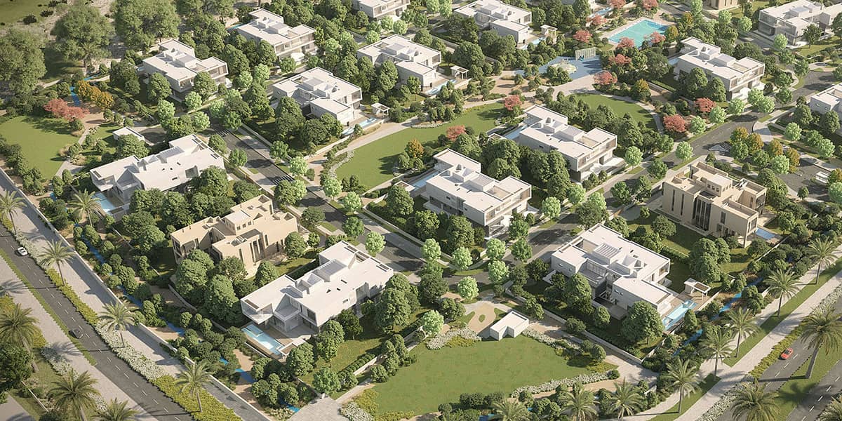 These expansive spaces in Meydan City provide direct access to green spaces, making them ideal for hosting family gatherings or relaxing in a tranquil setting. Moreover, these plots are planned to accommodate the construction of modern mansions that blend traditional Arabic architecture with contemporary amenities. Additional features include underground parking and annexe for guest accommodations.