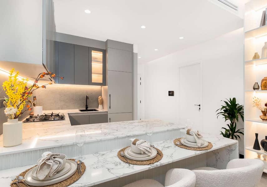 Vivanti Residences Tower C is a striking addition to the upcoming Vivanti complex in Jumeirah Village Circle, developed by Meteora Elite Real Estate Developments L. L. C. Created to elevate luxury living, this tower will showcase residences enhanced by smart technology, purified air systems and eco-conscious EV charging stations. Residents will have access to a fully fitted kitchen in every apartment, along with community-focused spaces such as a library, lounge, paddle tennis court and dedicated co-working zones. Other conveniences will include a café, supermarket, pharmacy and 24-hour concierge services. Designed with inclusivity in mind, Tower C will also offer a kids’ pool, outdoor play areas, pet-friendly zones and outdoor seating.